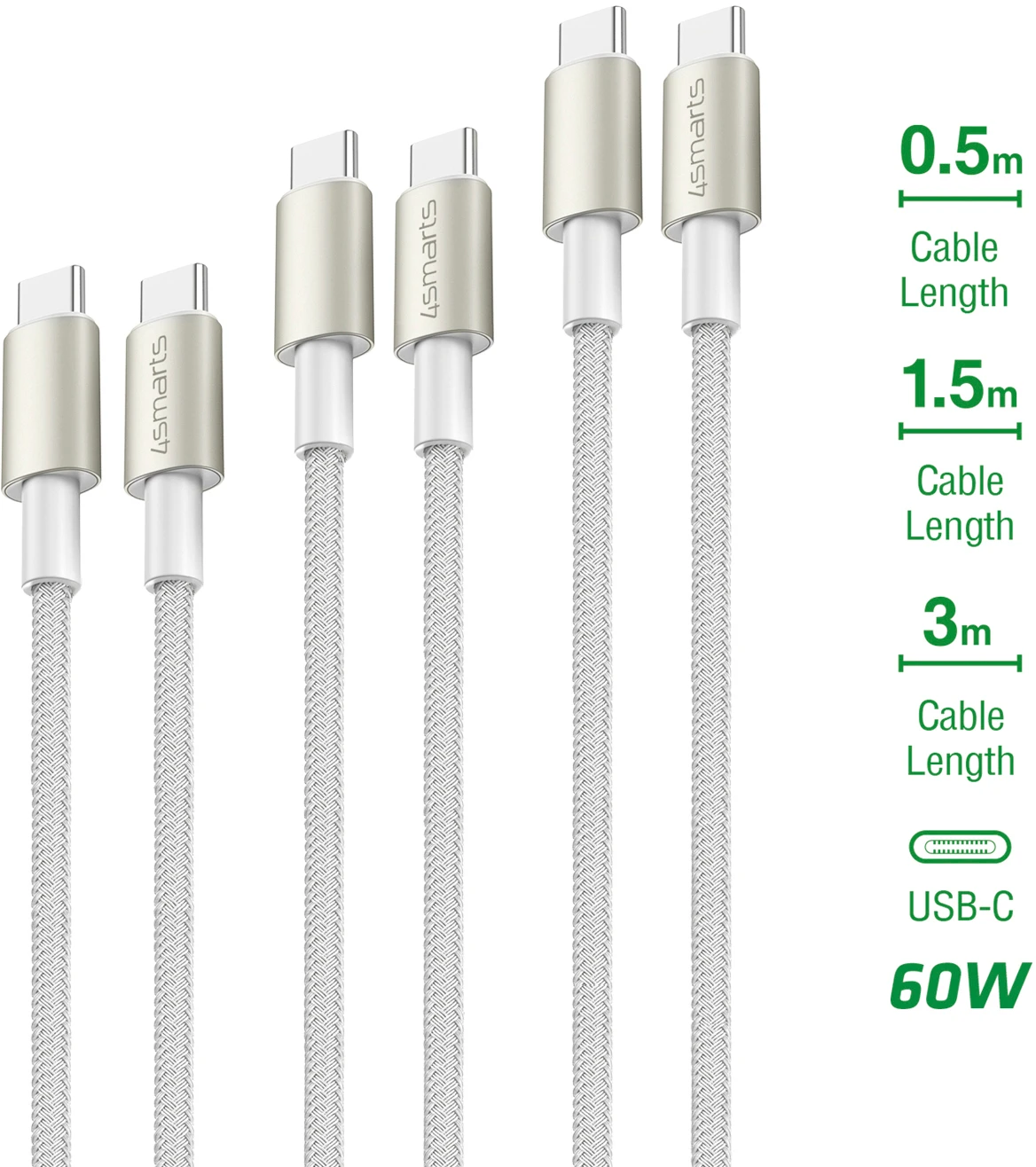 Du genießt die Flexibilität und Bequemlichkeit eines 3-teiligen Kabelsets, das perfekt auf deine Bedürfnisse abgestimmt ist. Ob du im Büro arbeitest, auf dem Sofa entspannst oder viel unterwegs bist, die unterschiedlichen Längen von 0,5m, 1,5m und 3m sorgen dafür, dass du immer das perfekte Kabel zur Hand hast.
